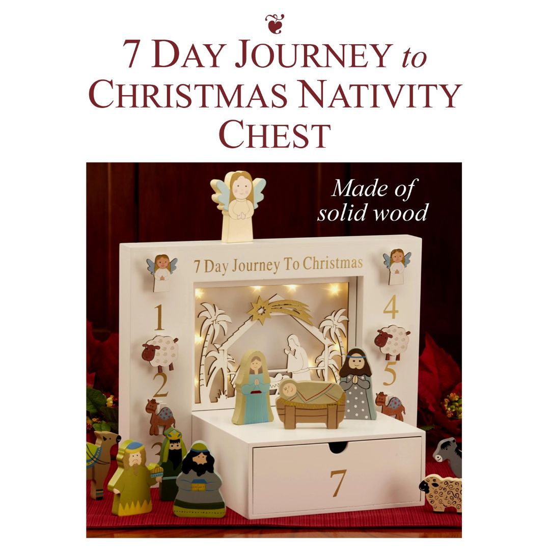 Children of all ages will love this interactive Christmas Nativity Chest! Made of solid wood, the chest comes with 12 figurines, including the Holy Family, the Magi, an Angel, and a Shepherd, as well as an interactive booklet to guide you through the Nativity story over the course of seven days. The set measures approximately 15 x 11 inches and includes a backdrop of LED lights.
