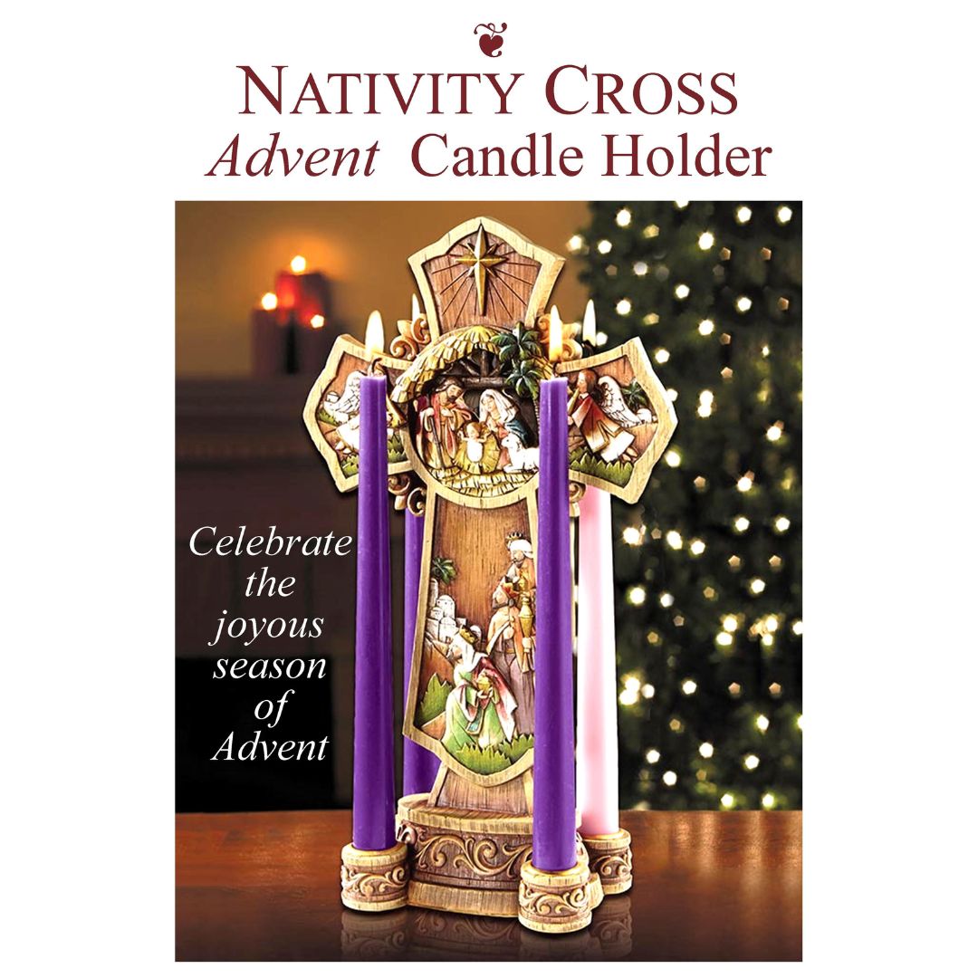 Unlike a traditional Advent wreath, this charming Advent candle holder can be reused every Christmas season and is certain to become a centerpiece of your Christmas décor. 13 inches tall by 7.8 inches wide, it is made of resin and includes four taper candle slots.