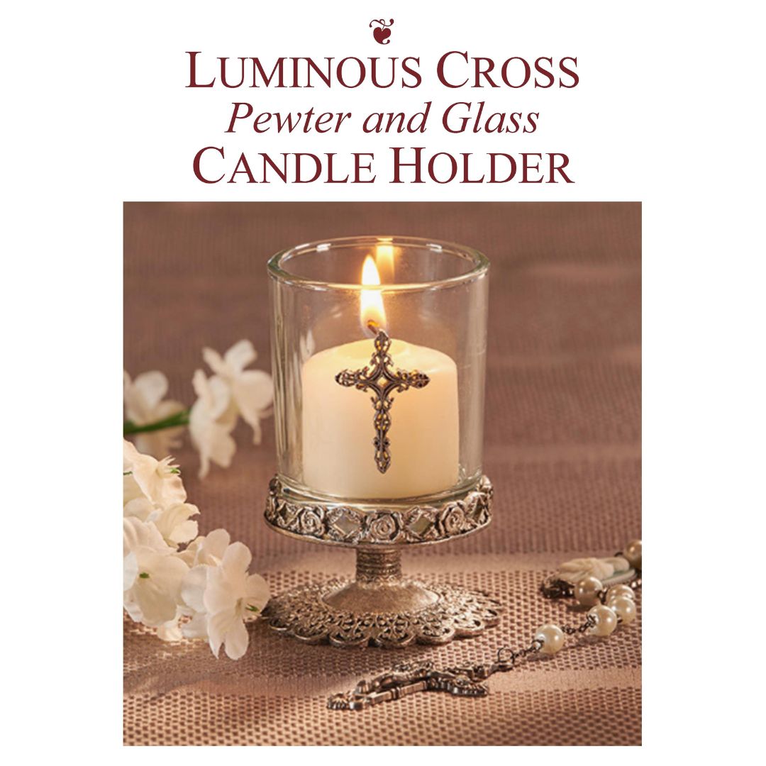 Made from antiqued pewter and glass, this elegant candle holder looks as though it could be a family heirloom. Embellished with floral and filigree details, it measures 3.5 x 2.3 inches. One ivory candle is included with each purchase.